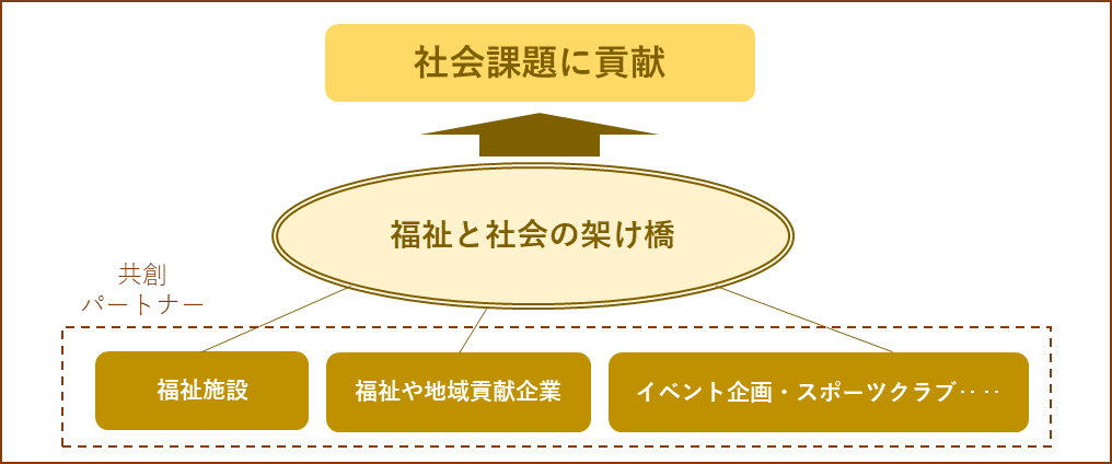 福祉施設の商品や作品(Products from welfare facilities)に対する固定概念の払拭やその良さを知っていただくため、販売会や展示会、オンラインショップなどさまざまな企画に取り組み、、共生社会づくりや障がい者の工賃向上を目指してまいります。