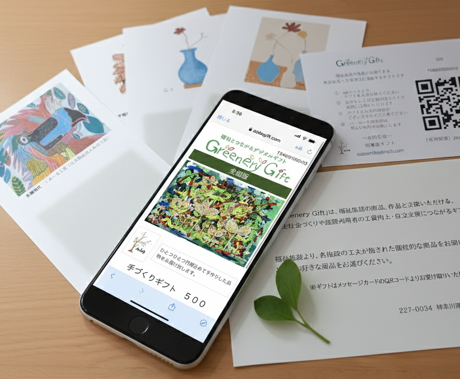 「Greenery Gift」は、福祉施設の商品に交換できるギフトをデジタル化で対応して、大量注文や安定供給が可能となります。店頭でのご利用だけでなく、WEBでクッキーやコーヒーなど様々な商品からお好きなものをお選びいただけます。普及するほど共生社会づくりや障がい者の工賃向上の効果が大きくなる仕組です。